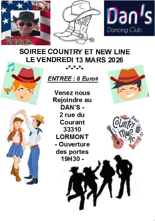 soirée Country et New Line - au Dan's Dancing Club à Lormont (33) - 19h30