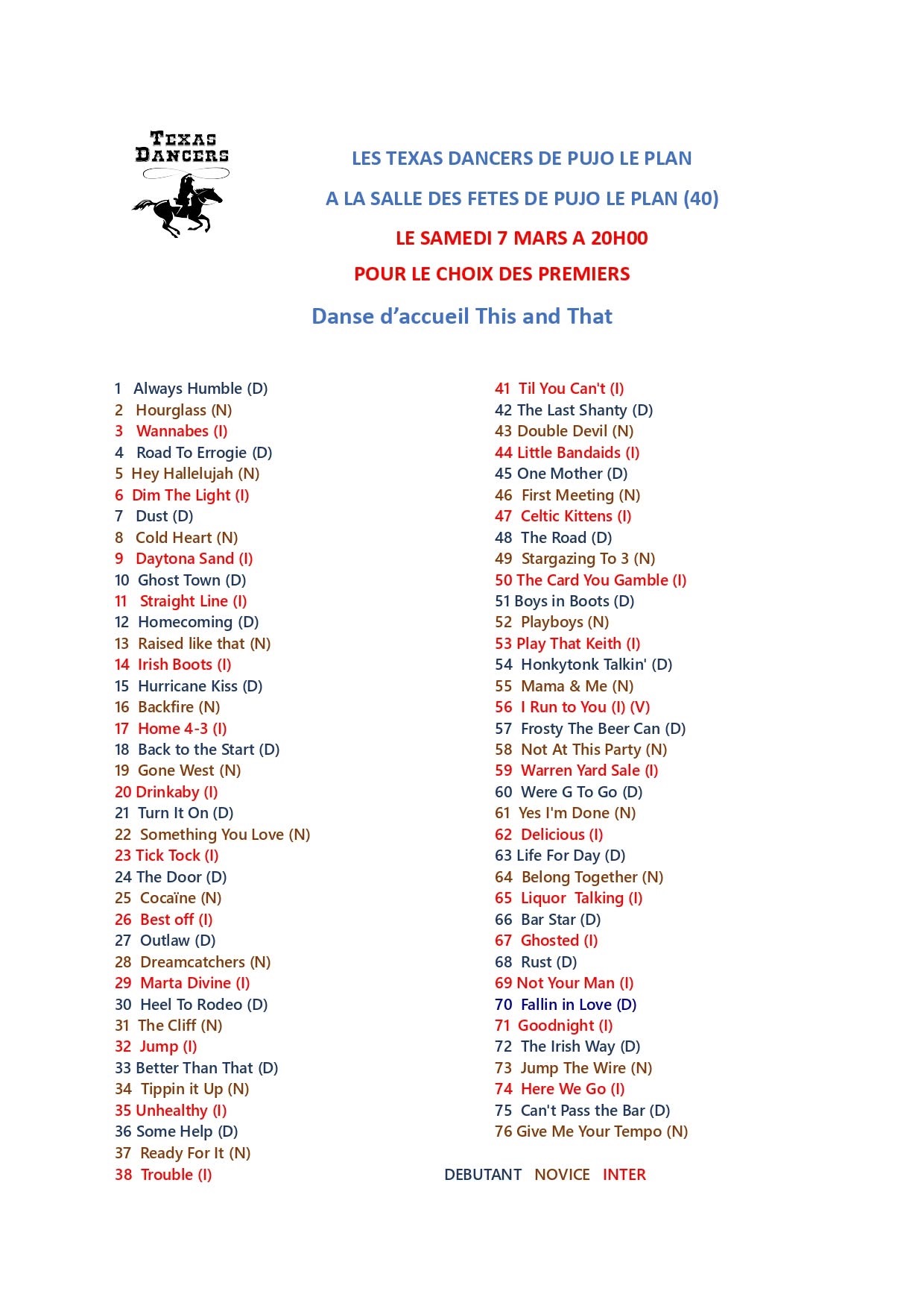 bal Country - salle des fêtes de Pissos - 14h30